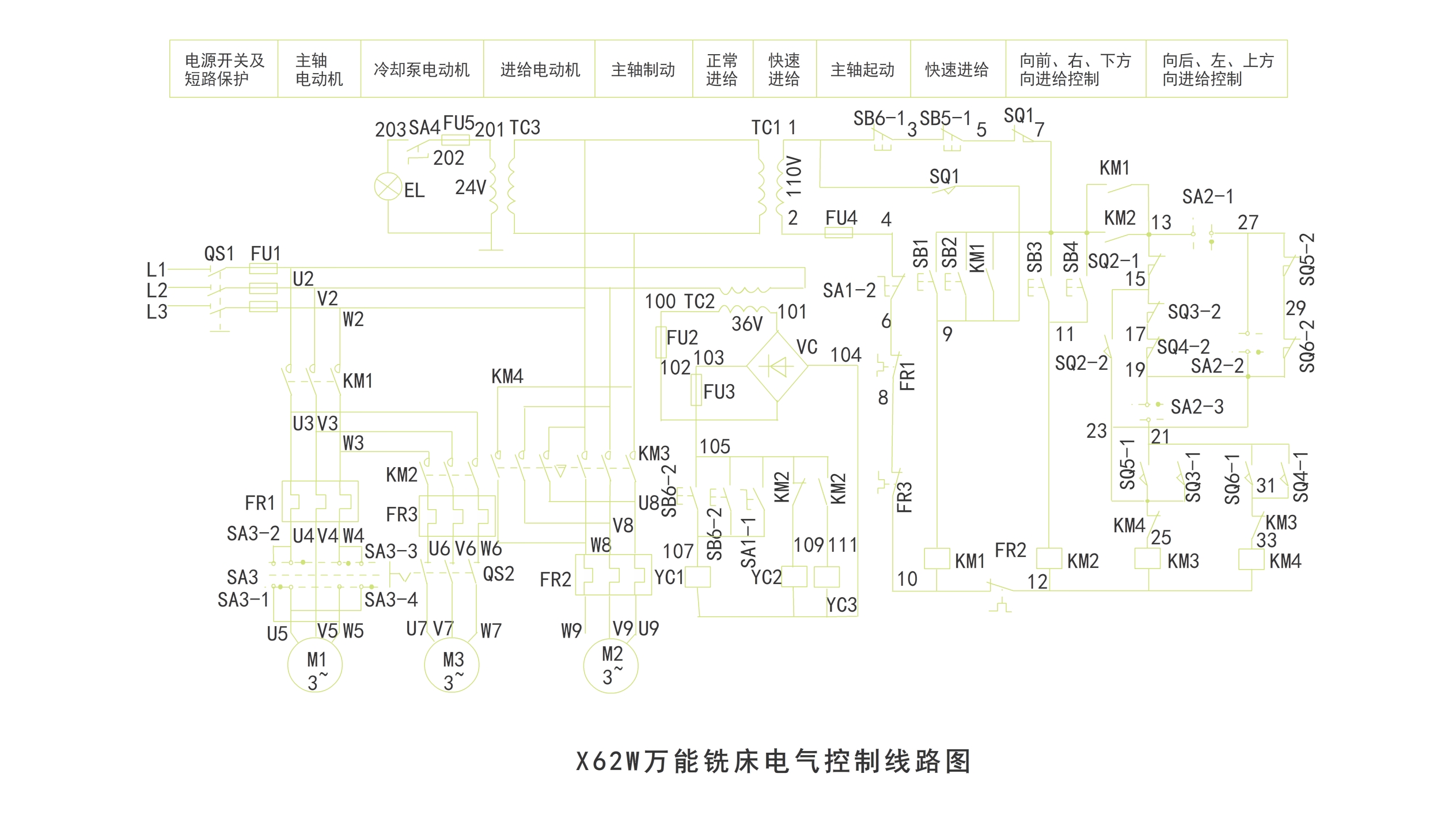 X62W万能铣床电气控制线路